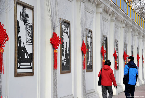 2017年2月7日,上海,在位于滬上歷史風貌區的衡山路一處建筑工地的百米圍墻上,28幅具有17世紀巴洛克風格的鐵藝畫作品讓路人眼前一亮、為街景帶來了獨特的藝術人文氣息。這座“露天美術館”就是新亮相的衡山藝廊。這些鐵藝作品畫面既有濃郁的歐陸風情,又巧妙地融入了中國剪紙的特色風格。使衡山路歷史風貌保護區內的臨時工地圍墻成了一種高雅文化藝術的享受。